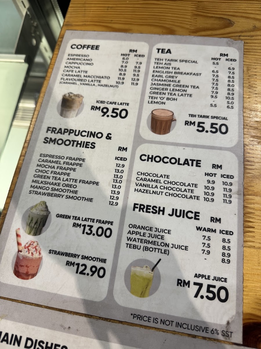 The menu structure accommodates quick orders and casual dining, suited for visitors looking for established local flavors in a cafe setting, with food and drinks typically enjoyed from breakfast through light meals and tea breaks.